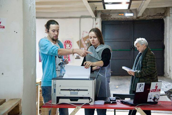 Некоторая рамка, задающая общее движение, все же была сформулирована: мы двигались от выставки к мастерской. То есть от пространства потребления результатов искусства к процессу его совместного создания. Несколько анархистов оценило достоинства этой идеи, напечатав в свободной типографии тираж брошюры с критикой зеленого капитализма. Злые поэты напечатали сборник своих стихов. Помимо ассамблеи и типографии мы поместили в центр события ежедневные дискуссии и мастер-классы. Но в основном участие посетителей ограничилось этими мастер-классами и дискуссиями. Также нам не удалось уйти от создания экспозиции; можно только заметить, что экспозиция постоянно менялась в процессе, например, когда участники квир-показа НЕПРИШЕЙПИ#ДЕРУКАВ дополнили ее своими фотографиями.