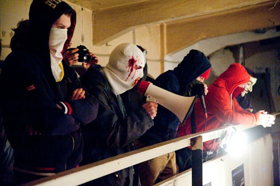 Фотография из журнала Esquire (сентябрь, 2009), использованная в статье «Художественная сцена» Паскаля Гилена в «Художественном журнале» Выход из этого тупика показывает акционистское движение от группы «Э.Т.И.» до лагеря «Оккупай» на Чистых прудах. Акция обретает собственный голос, задействуя непосредственную публичность городского пространства или вмешиваясь в гущу политического движения. Однако голос акционизма не может быть действительно независимым без связи с сообществом, формирующим свой язык и осуществляющим свою политику. Акционисты последней волны — я имею в виду «Войну» и Pussy Riot, — добившись большой известности, не предложили новой критики или политики, оставаясь в рамках общеоппозиционной повестки. А лагерь на Чистых прудах показал, как сообщество может расти в контексте самоорганизации и горизонтального принятия решений. Сегодня необходима не только смелость публичного жеста, но и создание новых учреждений, приходящих на смену старым институциям. Об идеях, появившихся в опыте такого учреждения, а также о возникших в связи с этим трудностях я и хочу здесь рассказать.