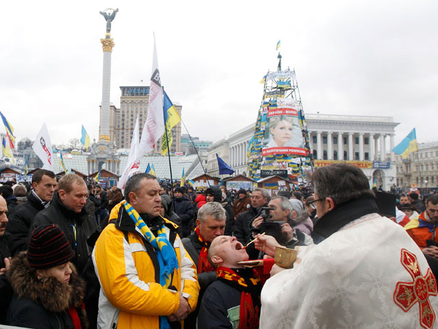 Созванное украинской оппозицией так называемое "Народное вече" на Майдане Незалежности в Киеве началось в воскресенье с молебна. Число присутствующих на Майдане постоянно увеличивается. Онлайн-трансляцию с места события, которое также получило название "Марш миллионов", ведет NEWSru.Ua. По оценке издания, на Майдане собрался "почти миллион человек". Один из организаторов "вече" партия "УДАР" уже к 13:00 по местному времени насчитала миллион протестующих. Оценки оппозиционеров из "Батькивщины" вдвое скромнее: всего пятьсот тысяч. Фотогалерею с места событий публикует "Новая газета". Выступающие со сцены призывают к отставке правительства и президента.