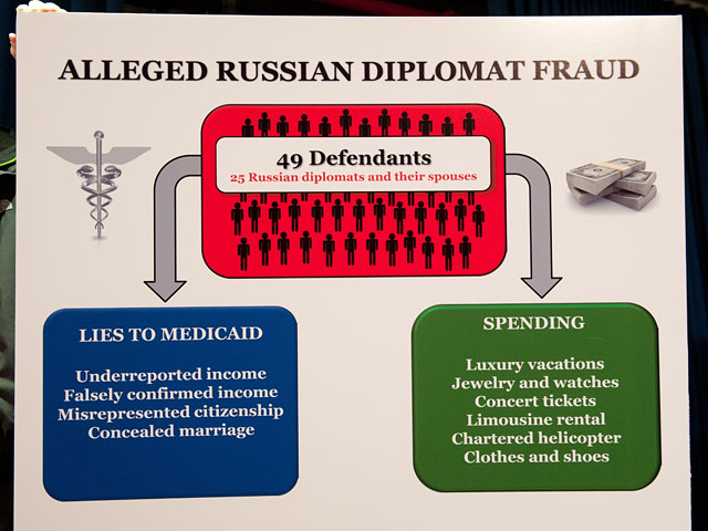 Следователь ФБР Джереми Робертсон рассказал, что махинации дипломатов продолжались с 2004 по 2013 год, а следствие длилось более полутора лет, передает "Интерфакс". "Российские дипломаты и их жены эксплуатировали и возможности в рамках программы Medicaid. В заявлениях на получение пособий по линии Medicaid не требуется указывать гражданство матери, так как предполагается, что ребенок, рожденный на территории США, автоматически приобретает американское гражданство. Но практически ни один ребенок, родившийся в США в семьях российских дипломатов, его не оформлял", - сказал Робертсон.