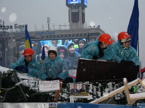 Ну, и оно, отчасти, не обмануло ожидавших. Много чего произошло. Закрыли метро в центре («Крещатик» так даже дважды) для поиска несуществующей бомбы, подогнали автобусы с Беркутом и внутренними войсками под все баррикады, ночью пустили тракторы на укрепления поменьше — на Шелковичную, Лютеранскую и Банковую. Один раз против трактора вышел Кличко и победил, а потом на Банковой и Лютеранской баррикады снесли, потоптав в давке людей с обеих сторон, и откуда-то взялся слезоточивый газ опять, а у кабмина коммунальщики в черном разобрали укрепления (суд предписал прекратить блокирование улиц города), а в мэрии просто выключили свет (кстати, могли бы и отопление, но новости об этом не пишут) да и вывели всех в ночь на улицу. Всех, кто остался, так как 9 декабря, после слухов о готовящемся штурме, митингующие попросили людей покинуть здание и не рисковать. И с самого утра 9-го до утра 10-го можно было следить по новостям за противостоянием в городе Василькове (где стоял когда-то мятежный Черниговский полк, во главе с декабристами). Там сторонники евроинтеграции то сдавали позиции, и автобусы со спецназом прорывались в город, то снова блокировали въезды в Киев.