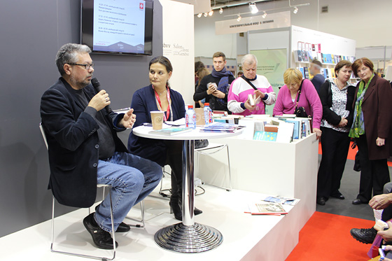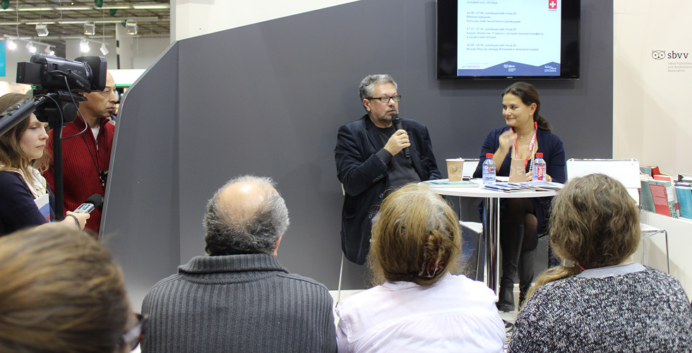 На ярмарке non/fiction в этом году была большая швейцарская программа. Среди потока событий в рамках программы прошла и встреча с Михаилом Шишкиным, самым известным русским писателем современности, который живет за пределами России. Встречу вела Надежда Сикорская, главный редактор издающейся в Швейцарии «Нашей газеты».