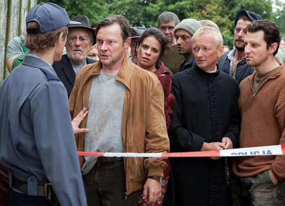 — О нет, мы были далеки от того, чтобы искать деревню с похожей историей, потому что там было бы труднее снимать. Люди бы острее реагировали на нас. На самом деле у нас было много опасений. Например, Пасиковский написал в сценарии про 328 надгробий. Это было проблемой, потому что не могли же мы использовать настоящие камни — мы поняли, что нам придется вытесать их точные копии. И мы сделали прекрасные копии со всеми деталями, буквами и так далее, консультанты следили за тем, чтобы надписи означали именно то, что должны означать. Но потом мы задумались: хорошо, поставим мы их на землю, но вокруг должна расти пшеница. Нельзя поставить 328 надгробий среди уже выросших колосьев. Тогда мы арендовали землю, посеяли зерно и стали ждать, пока пшеница вырастет.