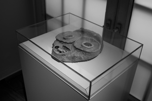 «Маска из Брайтанау», папье-маше, 1970-е годы, выставка «Документа 13», Кассель, 2012. К 1970-м годам лагерь Брайтанау стал исправительной колонией для девушек, сегодня — госпиталь для душевнобольных Сухарева: Вопрос все-таки был в контексте идеологии. Отсюда интерес к тому, что уходит от «называния». Идеология и политика — разные вещи. Идеология — это работа желания, то, как субъект хочет смотреться. То, о чем говорила я, — это модальность мышления, которая позволяет видеть то, что ты склонен усваивать догматически. Мне важно работать с невозможностью сообщения. Запись подобного опыта, как показали еще сюрреалисты, доступна, например, поэзии. Поэзия — это запись конкретного опыта.