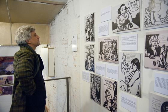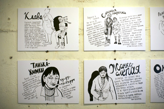 Отдельная часть выставки была связана с рисованной историей, и здесь главную роль играл графический репортаж. Каждую из серий, сделанных специально для выставки, можно назвать программной. Серия «Девочки Нижнего Новгорода» Виктории Ломаско (Москва — Серпухов) — подробный и острый репортаж о буднях женщин в проституции, сделанный за несколько дней в машинах и на частных квартирах («конторах»). Репортаж Яны Сметаниной (Москва — Белебей) посвящен женщинам, навсегда закрытым в психиатрической больнице, и поднимает важнейшие для российского общества проблемы медикализации сопротивления и медицинского насилия. Репортаж Татьяны Фасхутдиновой (Ижевск) рассказывает о повседневности вымирающей деревни, о выживании в условиях маргинализации и бедности.