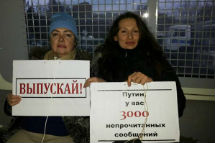 У Центра международной торговли в Москве, где в полдень начинается большая пресс-конференция Владимира Путина, полиция задержала активистов, пытавшихся передать главе государства подписи за освобождение всех "болотных узников". Об этом сообщает на своей странице в Фейсбуке организатор акции - журналист Евгений Левкович. По данным ОВД-Инфо, задержан 21 человек.