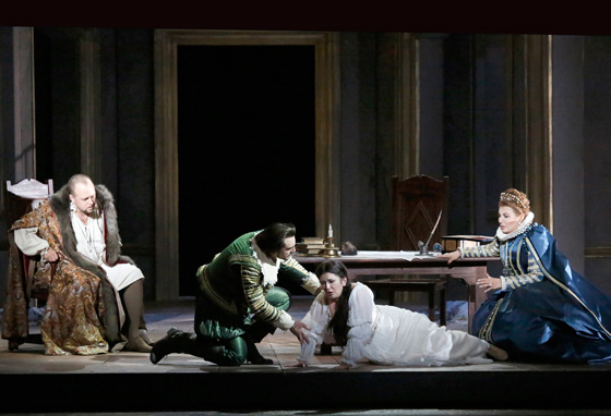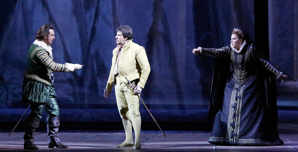 © Дамир Юсупов / Большой театр Тем не менее новорожденный гигант производит довольно яркое впечатление — благодаря кастингу. Большому удалось собрать сильный и интересный состав (даже два, но в данном случае речь о первом, премьерном), в котором была своя интрига. Суперзвезда Мария Гулегина наконец-то (запоздало, конечно) дебютировала на главной сцене страны, причем в меццо-сопрановой партии Эболи (вообще-то Гулегина — сопрано, но бравирует широтой своих репертуарных возможностей). В результате ее героине необыкновенно повезло с темпераментом и верхними нотами. Другая женская партия — Елизаветы Валуа — прекрасно сделанная работа Вероники Джиоевой, в богатом голосе которой были и животная страсть, и небесная нежность.