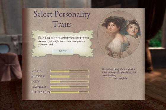 Пока в демо-версию, доступную для скачивания, играть смогут только истовые фанаты — болванчики вместо персонажей, унылые пейзажи и кривоватые интерьеры нагоняют тоску, набор действий тоже довольно ограничен. Но в будущем Тайрер и ее команда обещают балы, карточные игры, расширенный набор интриг, возможность управлять поместьем, музыкальную мини-игру и прочие радости жизни — остается надеяться, что разработчикам удастся осуществить все задуманное. В любом случае, армия желающих стать мистером Дарси или Джейн Беннет уже их поддержала.