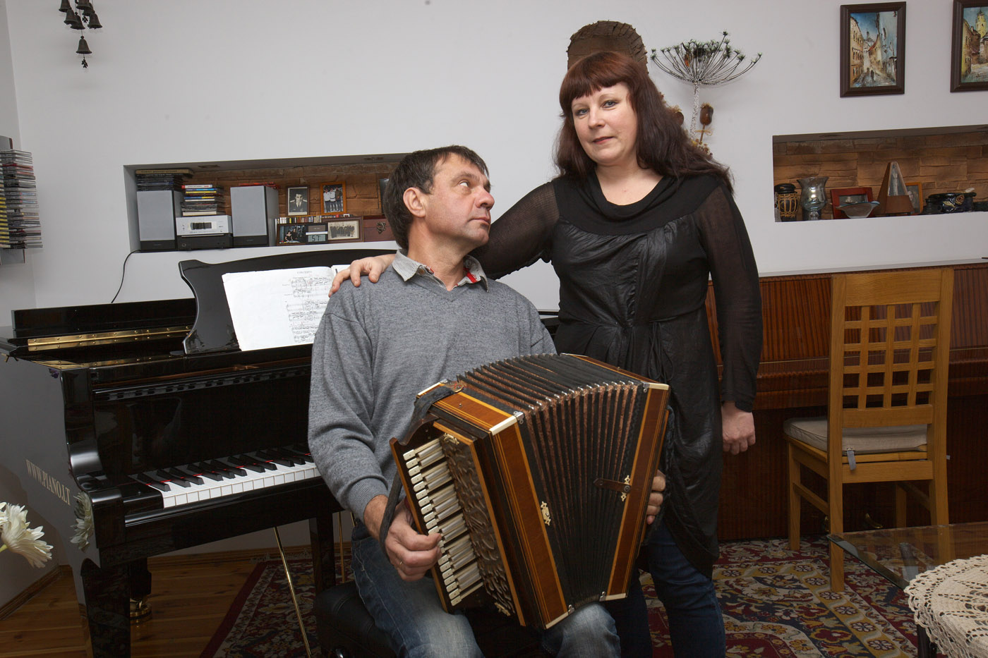 Ирена и Николай Захаровы. Фото: В.Царалунга-Морар"С Николаем мы встретились, когда ехали на один из концертов. Он сидел в автобусе и пел романс "Не для меня". Казачий старинный романс. Наши взгляды встретились и всё. Тут же он ко мне приехал с юга России на север, в Коми Республику. В нашей гимназии преподавал, создал фольклорное отделение, класс баяна."
