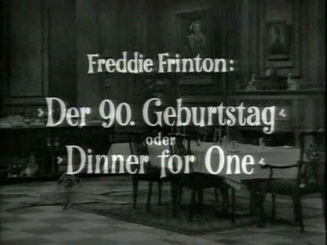 Комедийный фильм "Ужин на одного" или "Девяностый день рождения" (Dinner for One oder Der 90. Geburtstag), который является неотъемлемым атрибутом празднования Нового года в современной Германии, отмечает сегодня 50-летний юбилей, сообщает ИТАР-ТАСС. Эта короткометражная лента, снятая в 1963 году немецким телеканалом NDR, имеет среди немцев культовый статус, сравнимый с "Иронией судьбы" в России.