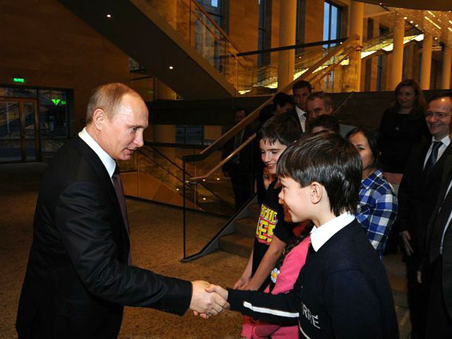 Приехав в Мариинский театр, Путин встретился с Валерием Гергиевым, художественным руководителем Сводного детского хора. После этого вместе с вице-премьером Ольгой Голодец президент послушал несколько песен в исполнении хора, в том числе: "Пусть всегда будет солнце", "Орлята учатся летать". Для президента дети также исполнили песню, которую услышат гости Олимпиады на церемонии закрытия, передает РИА "Новости".
