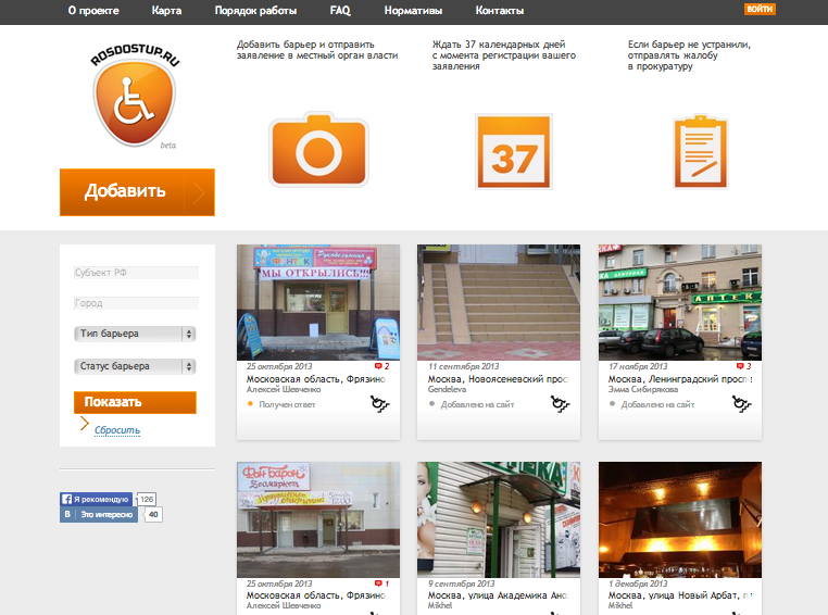 «Росдоступ» – онлайн-ресурс, с помощью которого люди с инвалидностью, испытывающие сложности в передвижении, могут сообщить о дефектных, с точки зрения мобильности, объектах городской среды.