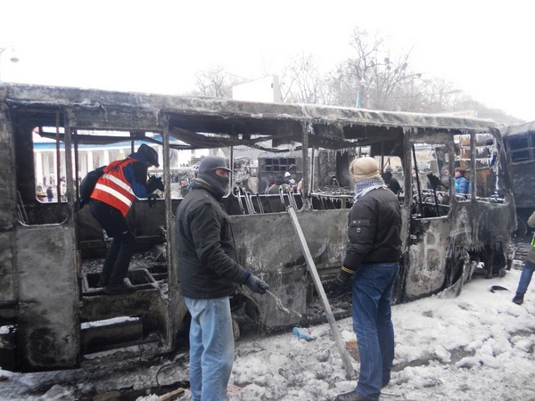 Сожженные автобусы — «Беркута» или МВД — уже не разобрать