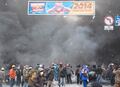 Однако оттуда быстро подошли 300-400 оппозиционеров. Силовики отступили, отстреливаясь и закидывая демонстрантов светошумовыми и перечными гранатами. После этого начались позиционные бои у стадиона "Динамо".