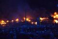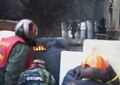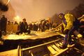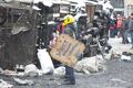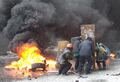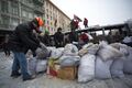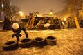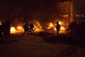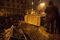 В среду вечером участники киевских протестов соорудили новые укрепления на улице Грушевского, где происходят основные столкновения с "Беркутом". Как сообщает корреспондент "Граней", в обороне Евромайдана участвуют тысячи людей, среди них много женщин. У стадиона "Динамо" выстроены три ряда баррикад, между протестующими и милицией стена огня от горящих покрышек. Для строительства баррикад пилят ветки деревьев, пригнали две старые машины, связывают проволокой шины, разбирают платный туалет. Волонтеры раздают питание и марлевые повязки.