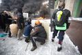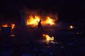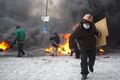МВД сообщает, что пламя от покрышек на улице Грушевского перекинулось на дом 4. Кроме того, утверждается, что протестующие разгромили офис телерадиокомпании "Киев" на Крещатике.