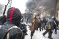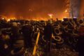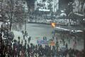 Активисты кидают в милицию "коктейли Молотова" и камни, обстреливают петардами. В ответ слышны взрывы гранат.