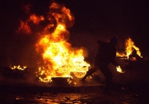 Однако оттуда быстро подошли 300-400 оппозиционеров. Силовики отступили, отстреливаясь и закидывая демонстрантов светошумовыми и перечными гранатами. После этого начались позиционные бои у стадиона "Динамо". Милиция бросает через остатки баррикад гранаты, активисты - коктейли Молотова. Одновременно демонстранты разбирают клумбы для постройки новых баррикад. Силовики заявляют в мегафон, что действия граждан незаконны.