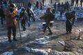 Активисты кидали в милицию "коктейли Молотова" и камни, обстреливали петардами. В ответ слышались взрывы гранат.