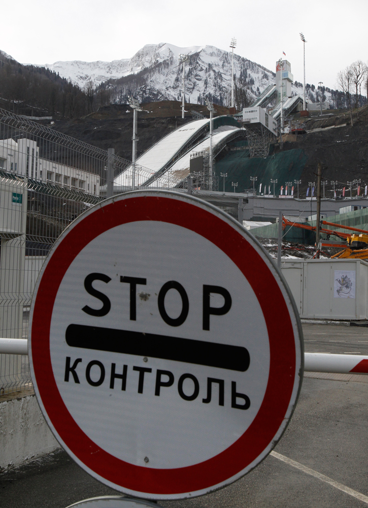 Право поболеть за наших в Сочи получат только самые проверенные россияне. Олимпийский комплекс трамплинов в Красной Поляне, февраль 2013 г.