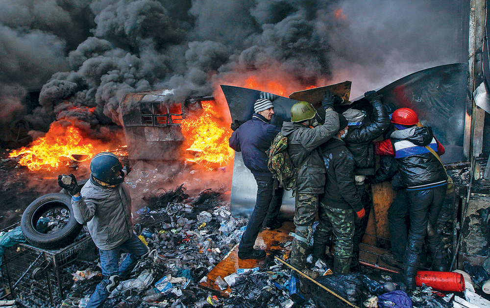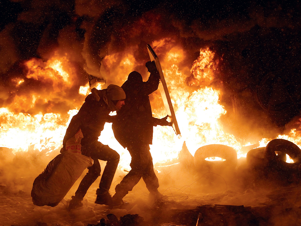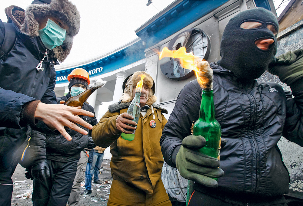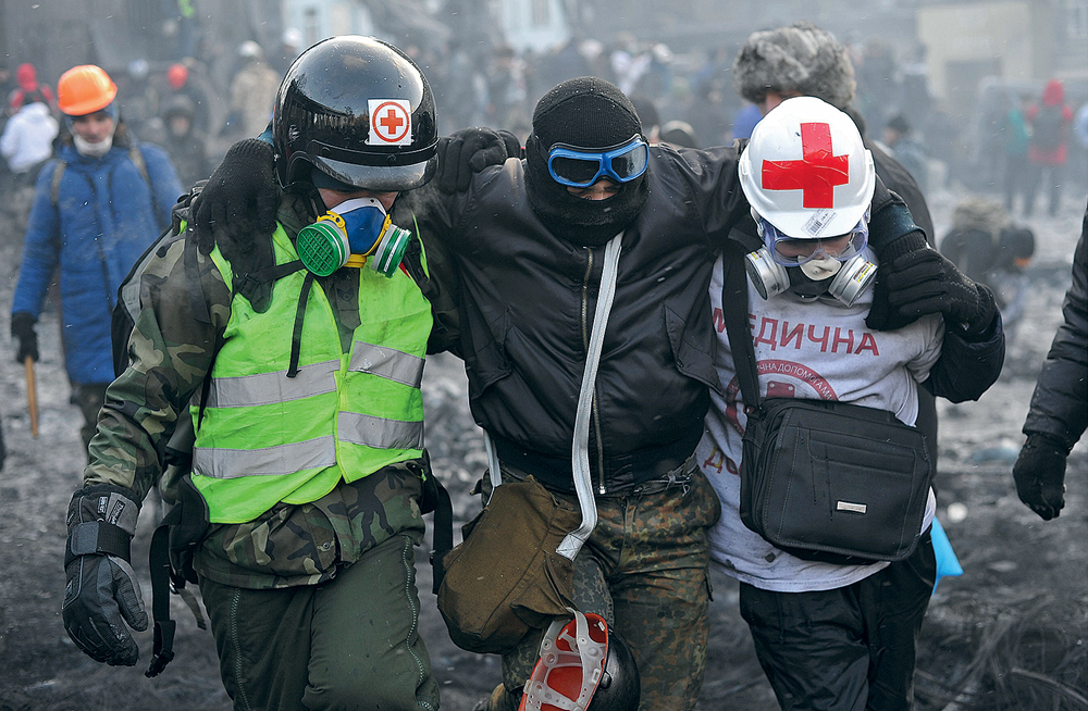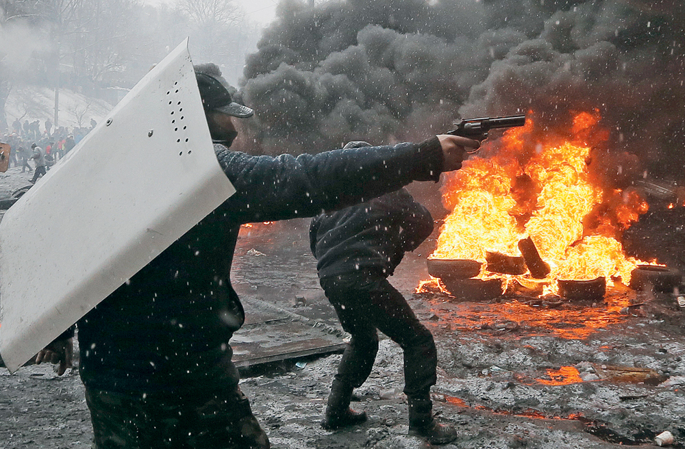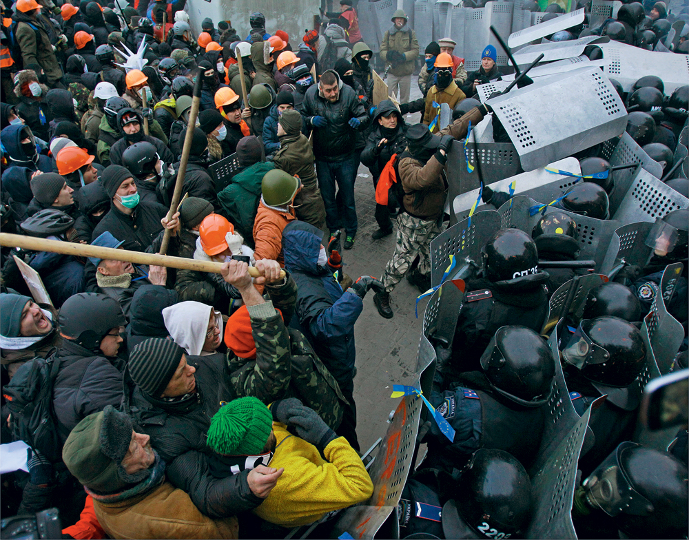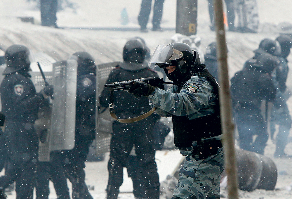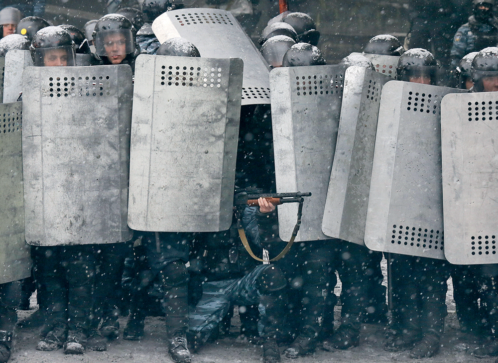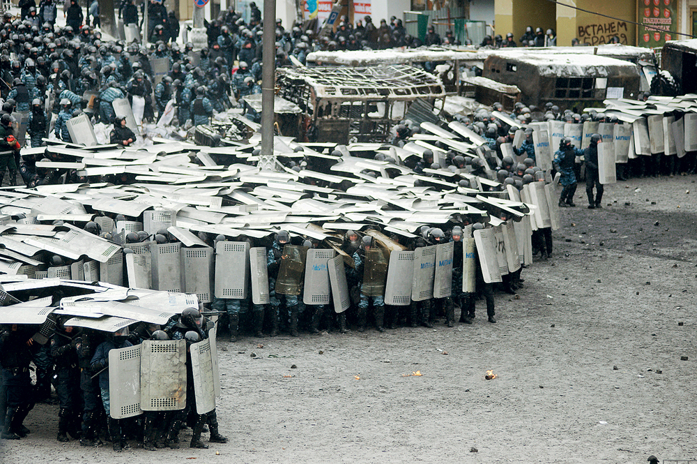 В Киеве уже больше недели идет война. На вооружении радикально настроенных демонстрантов — брусчатка, «коктейли Молотова» и петарды. Милиция и бойцы спецподразделения «Беркут» отвечают резиновыми пулями, водометами, светошумовыми и аэрозольными гранатами. Навоевавшись, демонстранты идут отсыпаться в захваченное еще в декабре здание киевской мэрии на Крещатике, а спецназовцы проводят смену личного состава. Иногда, чаще под утро, «Беркут» переходит в наступление: в ход опять идут гранаты, резиновые пули, дубинки. Под натиском милиции демонстранты отступают к Европейской площади, сдав Грушевского и вход на стадион «Динамо», но, очевидно не получив четких указаний от руководства, силы правопорядка обычно отходят назад. Каждый день — одна и та же картина. Почему милиция никак не перейдет в решительное наступление, некоторым активистам Евромайдана понятно как дважды два: «Они тупо не могут нас повалить. Они же тоже устали, не кони», — залихватски растолковывает 34-летний киевский архитектор Евгений. А вот другим, более компетентным, понятно не очень: «Хотели бы, давно пошли бы всеми силами вперед. Что-то тут не так», — недоумевает 56-летний бывший офицер МВД Алексей.