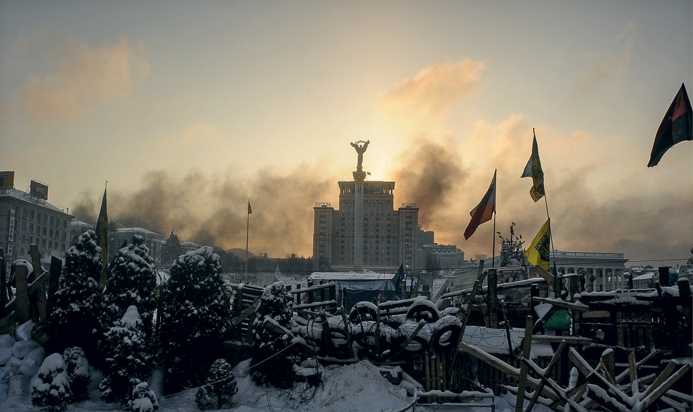 Линия фронта определялась по дыму от горящих покрышек. Киев, ул. Грушевского, 23 января 2014 г.