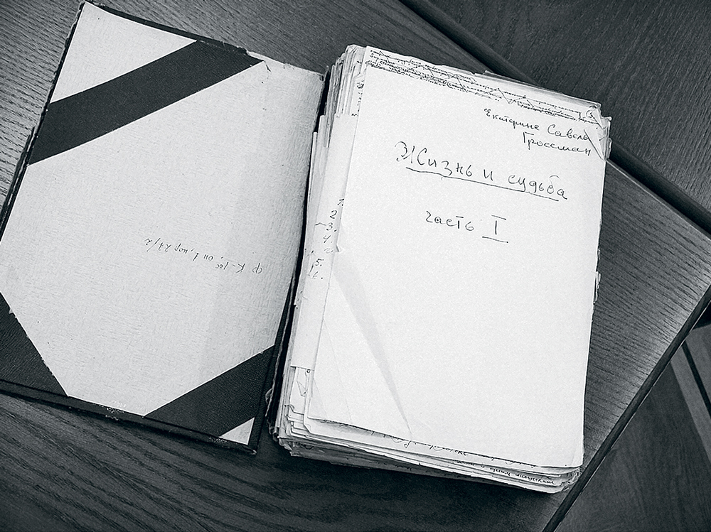 Василий Гроссман. Конец 1940-х Летом минувшего года произошло знаменательное событие, на которое почти никто не обратил внимания, — освобождение из-под ареста рукописи известного романа Василия Гроссмана «Жизнь и судьба». Из лубянского архива она была торжественно передана в Государственный архив литературы и искусства. Произошло это в присутствии документальной кинокамеры Елены Якович. *Вместе с «Жизнью и судьбой» была конфискована рукопись повести «Все течет» — о возвращении человека из сталинских лагерей, над которой Гроссман работал с 1955 года. Впоследствии он фактически написал повесть заново (1963). В 1970-м она была опубликована в Германии, в СССР — в 1989-м. Когда рукопись «самой главной книги ХХ века» (таковой она почитается многими авторитетными экспертами) была приговорена высшим руководством страны к пожизненному заточению на Лубянке*, автор пришел домой и записал: «Я понял, что я умер». Он умер через два года, в 1964-м. Машинопись книги с помощью Владимира Войновича и Андрея Дмитриевича Сахарова была переправлена на Запад, опубликована в 1980-м за границей, в Швейцарии. У нас он увидел свет на восемь лет позже, в 1988-м. Как все это происходило, и рассказано в фильме Елены Якович. Вместе с ним на телеканале «Культура» повторно выйдет в эфир многосерийная телеэкранизация самого романа «Жизнь и судьба» Сергея Урсуляка, озвучившего закадровый текст к документальному фильму о жизни и судьбе романа и его автора. Текст простой, ясный, почти без игры в эмоции. И исполнение его — почти бесстрастно. Это не значит, что он лишен драматизма. Просто драма не на поверхности повествования, она в глубине его. Как и смысл того, что мы слышим и видим на экране.