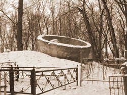 В Пскове есть место, кровно связанное с Первой мировой войной: это варварски уничтоженное после Октябрьского переворота воинское кладбище на северо-западе Мироносицкого кладбища, где после 1914 года было похоронено более 800 солдат и офицеров Русской императорской армии. Между захоронениями стояла часовня (освященная, по разным данным, либо в честь Воскресения Христова, либо в честь святого князя Александра Невского и приписанная к одноименному воинскому храму Александра Невского). Часовня разрушена, от неё остались груда кирпича и переживший адский ХХ век бетонный купол, который лежит на этой груде, как чаша, полная горя, и смотрит в небо. Время от времени эту чашу горя забрасывали кладбищенским мусором.