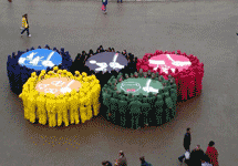 Местом проведения акции стала площадь Сталинграда. В ней приняли участие около 170 человек, которые были одеты в разноцветные комбинезоны. Они сформировали живые олимпийские кольца, держа над головой плакаты. В центре каждого кольца находился рисунок с символическим изображением одного из прав человека, нарушаемых в России. Участники акции осудили нарушение прав на свободу слова, манифестаций, пытки, нарушения прав мигрантов и геев.