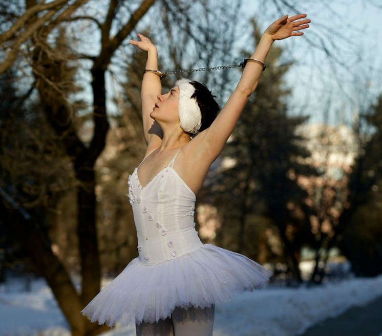 Балерина Александра Портянникова станцевала «одиночный протест» при 20-градусном морозе. Москва, 30 января 2014 г.
