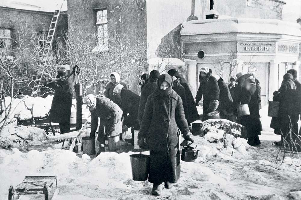 Ленинград, 1941 г. У водоразборной колонки, установленной на углу улицы Дзержинского и Загородного проспекта