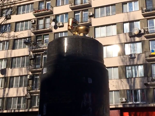 Новая инсталляция появилась на месте монумента несанкционированно и, вероятно, долго там не простоит. Ранее киевские чиновники провели опрос вреди горожан, узнав, что именно хотят жители видеть на месте строго памятника. Лидером голосования стал проект памятника меценатам Николе Терещенко и Лазарю Бродскому, сообщает "15 минут".
