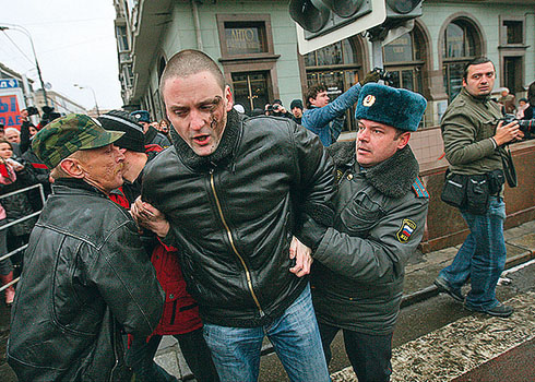 Шесть лет назад мы стояли ровно на том же месте, где встретились и сейчас, — возле памятника Грибоедову на Чистых прудах. Сергей сам был тогда похож на памятник — в черном кожаном пальто, которое сидело на нем, как влитое, статный, с каменным лицом, на котором не проступает улыбка, даже когда рассказываешь ему анекдот. Разве что оглядывался все время по сторонам — не следят ли за нами люди в штатском? Тогда Удальцов говорил, что в случае чего может вывести на улицу около 8 тыс. своих сторонников по всей стране. «Конечно, этого мало, — признавал он. — Общество к переменам объективно не готово. И как раз задача левого движения — сформулировать идеи, которые будут привлекательны для масс, а не для узкого круга, создать мощную левую партию. Думаю, это дело ближайших двух лет». Прошло четыре года. За это время Сергей привык к отсидкам — у него их уже более ста. За эти годы Удальцов научился мрачно шутить: «Отлично провел время, — говорит он о своих отсидках. — Отдохнул, выспался, сбросил восемь килограммов — сплошные плюсы!»