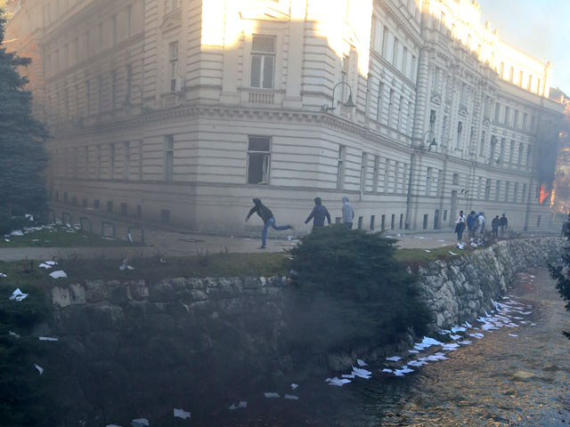 Манифестанты подожгли государственные учреждения в трех крупных городах страны - в Сараево, Тузле и Зенице. В Тузле около 5 тыс. человек ворвались в здание местной администрации и разбили компьютерную технику и мебель.