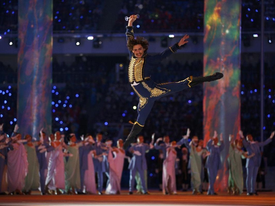 Открытие Игр было «нестандартной феерией, глубоко проработанным сочетанием классической музыки и балета, набором достопримечательности и звуков самого большого геополитического пространства в мире, реминисценцией тысячелетней истории с символами царской армии, советского монументализма и полетов в космос».