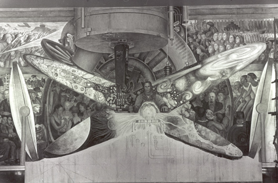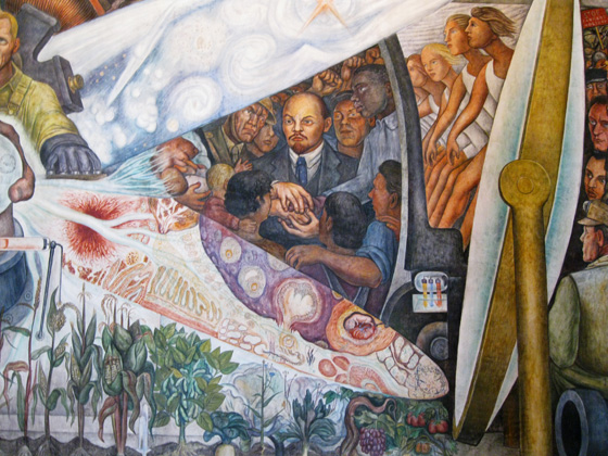 Фрагмент фрески «Человек, управляющий Вселенной». Дворец изящных искусств. Мехико Ривера часто называл себя пропагандистом. «Я хочу, чтобы мое искусство стало оружием», — говорил художник. Конфликты, возникавшие вокруг его работ, зачастую провоцировались и управлялись самим скандальным муралистом. Известная формула: искусство порождает споры, а споры, в свою очередь, порождают и укрепляют искусство. Спор вокруг изображения Ленина изначально был инициирован благодаря прессе. Многие рассматривают все работы Риверы в США как большой рекламный трюк, где мощь американских СМИ выступает в качестве союзника для продвижения художника.