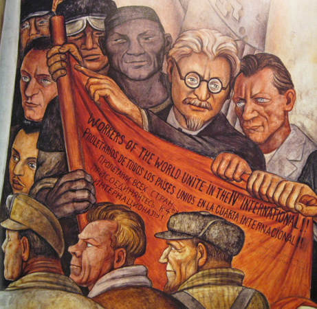 Фрагмент росписи «Человек, управляющий Вселенной. Человек в машине времени. Человек на перепутье». Дворец изящных искусств. Мехико, 1934 В том же 1934 году Диего Ривера подписал контракт с правительством Мексики на создание фрески во Дворце изящных искусств в Мехико. В новых обстоятельствах художник повторил с некоторыми изменения нью-йоркскую работу (добавил в композицию изображения Маркса, Энгельса, Троцкого, Лавстона, Вольфе и других).