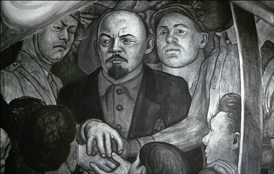 Диего Ривера. Фрагмент фрески «Человек на перепутье». Рокфеллеровский центр Торжественное открытие здания и фрески планировалось на 1 мая 1933 года. Незадолго до завершения мурали площадку, где работал художник со своими ассистентами, посещает репортер New York World-Telegram Джозеф Лилли. 24 апреля 1933 года появляется его статья с вызывающим заголовком «Ривера рисует коммунистические сцены, и Джон Рокфеллер-младший оплачивает счет». По свидетельствам ассистентов Риверы, в ответ на публикацию художник ради укрепления полемики преобразует одного из центральных персонажей — рабочий из революционной триады наделяется чертами В.И. Ленина. Изображение вождя русской революции в центре капиталистического мира и символа его нерушимости, в здании RCA, формально стало причиной затяжного конфликта между Рокфеллерами и Риверой. Спустя несколько дней после газетной шумихи Нельсон Рокфеллер обратился в письме к создателю противоречивой мурали с просьбой заменить изображение Ленина на обобщенный образ рабочего лидера. На что Ривера выдвинул встречное предложение — оставить Ленина и добавить в композицию фигуру Линкольна. Этот вариант Рокфеллеров не устроил. Побоявшись обвинений в пропаганде коммунизма и общественных волнений, управляющие Рокфеллеровским центром не нашли ничего лучше, чем отстранить Риверу от работ, а незавершенную фреску закрыть от посторонних глаз защитным экраном. 9 мая 1933 года стало пиком конфликта, в здание RCA не было доступа, художник с ассистентами были выведены с площадки. Люсьен Блош, одной из помощниц Риверы, удалось сделать фотографию мурали в том состоянии, в каком ее оставили в мае 1933 года: это единственная репродукция произведения, по которой сегодня мы можем оценить композицию, сюжет и содержание. Рокфеллер распорядился заплатить Диего Ривере часть гонорара в размере 14 тысяч долларов (позже эти деньги муралист потратит на создание фрески «Портрет Америки» в New Worker's School). Уже через час после происшествия собралась стихийная демонстрация в поддержку мексиканского художника. Среди лозунгов звучали: «Мы хотим Риверу!», «Спасите искусство Риверы!» Сам виновник спора принимал активное участие в митингах, регулярно появлялся в радиоэфире, имя художника на некоторое время заполнило все новостные передовицы. New York Times назвала муралиста «огненным крестоносцем кисти». Наравне со сторонниками художника свою позицию высказывают и идеологические антагонисты. Так, Компартия США обвиняет Риверу в спекуляции и использовании коммунистической риторики в своих контрреволюционных целях (Диего Ривера был исключен из Коммунистической партии Мексики в 1929 году).