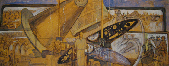 Фрагмент фрески «Человек, управляющий Вселенной. Человек в машине времени. Человек на перепутье». Дворец изящных искусств. Мехико