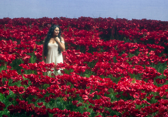© Metropolitan Opera Спектакль играется в двух контрастных пространствах: наглухо закрытом, с тяжелыми дверями, мощными балками и узкими окнами храме, на светлых стенах которого уже в прологе видны признаки неблагополучия, и в покрытой алыми маками степи под гигантским синим небом. Для меня контраст этот — внутренний. Граница между «русским» и «половецким» на самом деле проходит в душе Игоря, где и синь небесная, и радость, и свобода — лишь мечта. И только вернувшись в разрушенный храм и смыв с себя свое прошлое (вода, омовение, очищение — возвращающаяся метафора в спектакле), можно начать долгое духовное преображение.