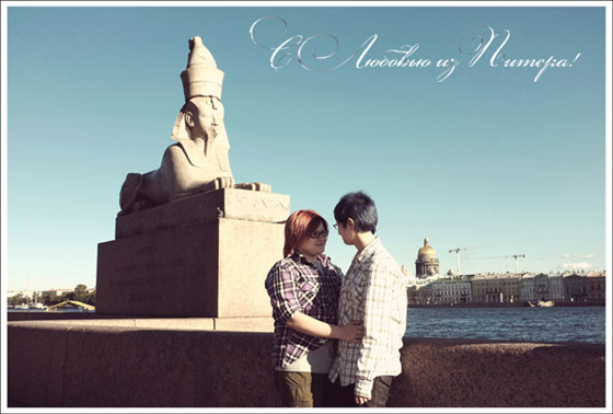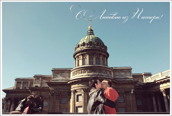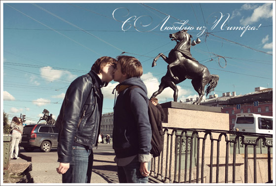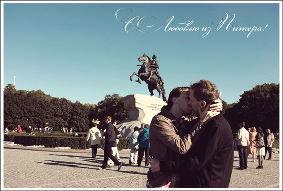 © Алексей Тихонов / Colta.ru Осенью позапрошлого года, когда официальная гомофобия в России еще только разогревалась и в основном практиковалась на Питере, мы сделали на COLTA.RU фотопроект, который стал самой международно известной публикацией OpenSpace.ru и COLTA.RU за всю историю обоих сайтов. С помощью продюсера Ольги Шиляевой и фотографа Алексея Тихонова мы нашли в Петербурге 9 пар, которые любили нежелательным для властей образом, и предложили не просто сфотографироваться — но именно поцеловаться и именно на фоне главных красот культурной столицы. Это было очень мужественно со стороны девушек и молодых людей. Спасибо им! Фотографии мы оформили как классические туроткрытки с вязью. Именно этот проект был перепечатан потом в The Guardian, The Huffington Post и Dazed and Confused — и даже был выставлен в Голландии. Теперь мы решили превратить виртуальные открытки в реальные. Вот он — этот набор из 9 открыток тиражом всего в 15 экземпляров (спасибо сервису онлайн-печати Nemakulatura!). Поддержи Кольту! Поддержи любовь!