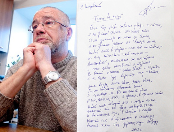 Автограф стихотворения Сергея Гандлевского «Tombe le neige»