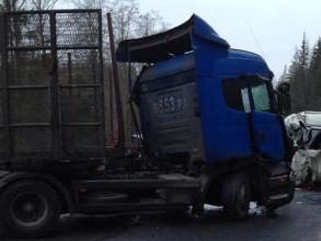 По данным ГУ МЧС по Ленобласти, информация о ДТП на трассе "Скандинавия" в Выборгском районе поступила в 10:30 мск. "По прибытию в 10:50 установлено, что произошло лобовое столкновение лесовоза и микроавтобуса", - говорится в сообщении на сайте.
