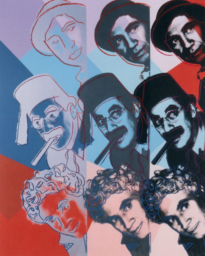 В действительности персонажей больше — на одном из портретов Уорхол изобразил трех братьев Маркс (Чико, Граучо и Харпо) из пяти. Хочется приписать к этой дюжине и самого короля поп-арта*, перевернувшего визуальный мир. Однако Уорхол не еврей.