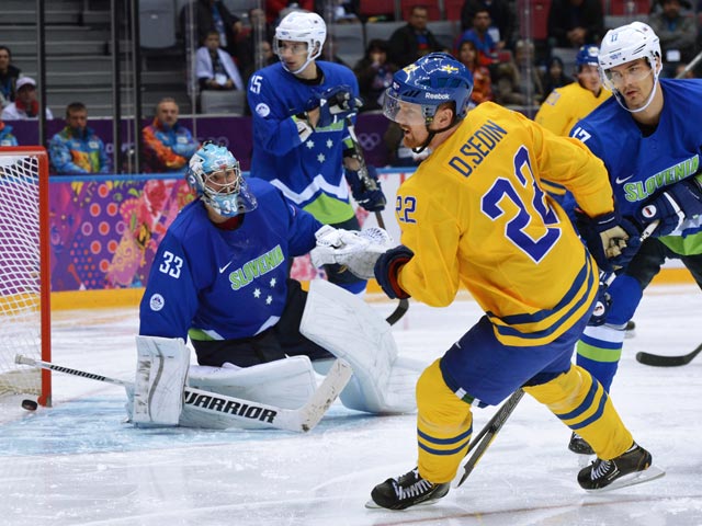 Дублем в составе победителей отметился Карл Хагелин. По шайбе в ворота словенцев забросили Александр Стин, Даниэль Седин и Луи Эрикксон. Своих оппонентов скандинавы перебросали ровно вдвое - 38:19.