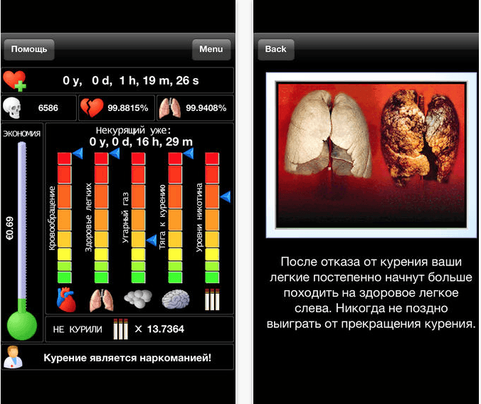 Приложение «Моя последняя сигарета» использует два главных инструмента, чтобы помочь пользователям отказаться от курения: