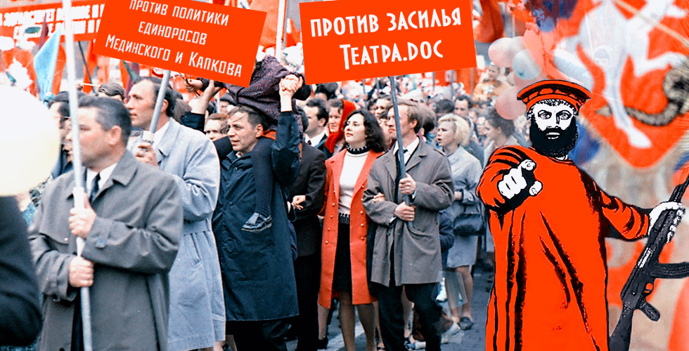 «Мы горячо протестуем против политики единороссов Мединского и Капкова, против отвратительных институций вроде “Гоголь-центра” и “Школы театрального лидера”, против засилья “Театра.doc”, против коллективного Жолдака—Богомолова, против надругательств над Пушкиным и контрактной системы» — так примерно можно сформулировать совокупные протестные настроения театрального сообщества.