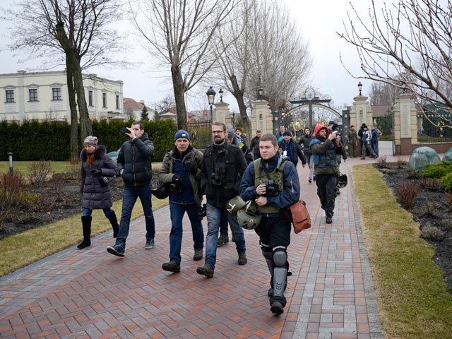"Журналистов на территорию резиденции пропустили беспрепятственно", - сообщил украинский "5-й канал". По данным телеканала, вход на территорию охраняют только несколько сотрудников Государственного управления делами президента и участники "самообороны Майдана".