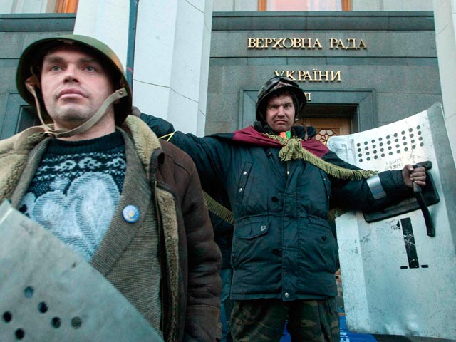 В Верховной Раде Украины, которая накануне решила работать без выходных до разрешения кризиса, к очередному заседанию зарегистрирован проект, предполагающий проведение досрочных выборов президента уже в конце апреля. Накануне также был зарегистрирован проект об импичменте президента Януковича. В ночь на субботу на Майдане Незалежности было объявлено, что весь правительственный квартал перешел под контроль протестующих, и здания кабмина, Администрации президента и Рады охраняют "сотни самообороны" Майдана.