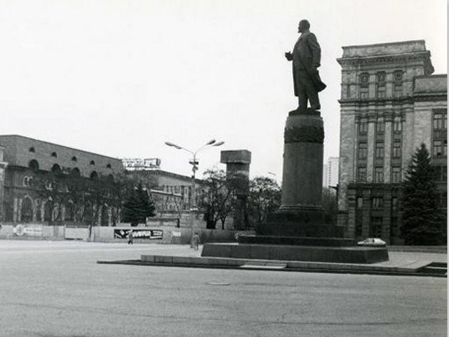 Местные жители, поддерживающие протестующих на площади Независимости, 21 февраля снесли памятник Ленину на одноименной площади.